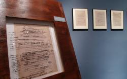 Mihály Babits also made use of every blank or half blank scrap of paper. Similarly to Füst, he liked correspondence paper even if used, and even the smallest piece of scrap paper bore witness to his literary translator’s fantasy, as the scene of Dante meeting Giotto and Guido sketched in pencil shows. At the same time, as a conscientious editor Babits made final copies of the three parts of Dante’s Divine Comedy in three books (of these two are exhibited).