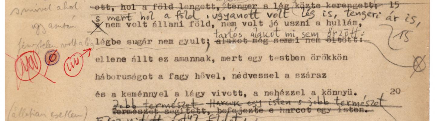 Gábor Devecseri was notorious for constantly making corrections. He typed Ovid’s Metamorphoses at least four times in full in order to perfect his text through newer and newer rounds of correction. You can see that he made ample corrections even on the printer’s proofs. According to one story, some printers presented him with a font so that he would set his own texts at home and not tire them with constant resetting.