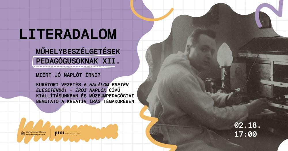 Szót ejtünk arról, hogyan vallanak saját naplóírói tevékenységükről a kiállításban megidézett szépírók, Füst Milán, Szentkuthy Miklós, Polcz Alaine és mások, megvitatjuk milyen módon segíthet a naplóírás gondolataink és érzelmeink tudatos, elfogadó kezelésében és bemutatjuk azt is hogyan jelenik meg a kreatív írás módszertana a PIM múzeumpedagógiai kínálatában.