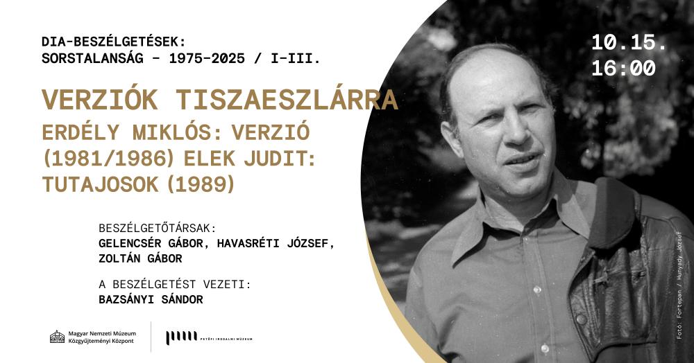 16 órától levetítjük Erdély Miklós Verzió című filmjét, majd ezt követi 17 órától Gelencsér Gábor, Havasréti József, Zoltán Gábor beszélgetése. A beszélgetést vezeti: Bazsányi Sándor.