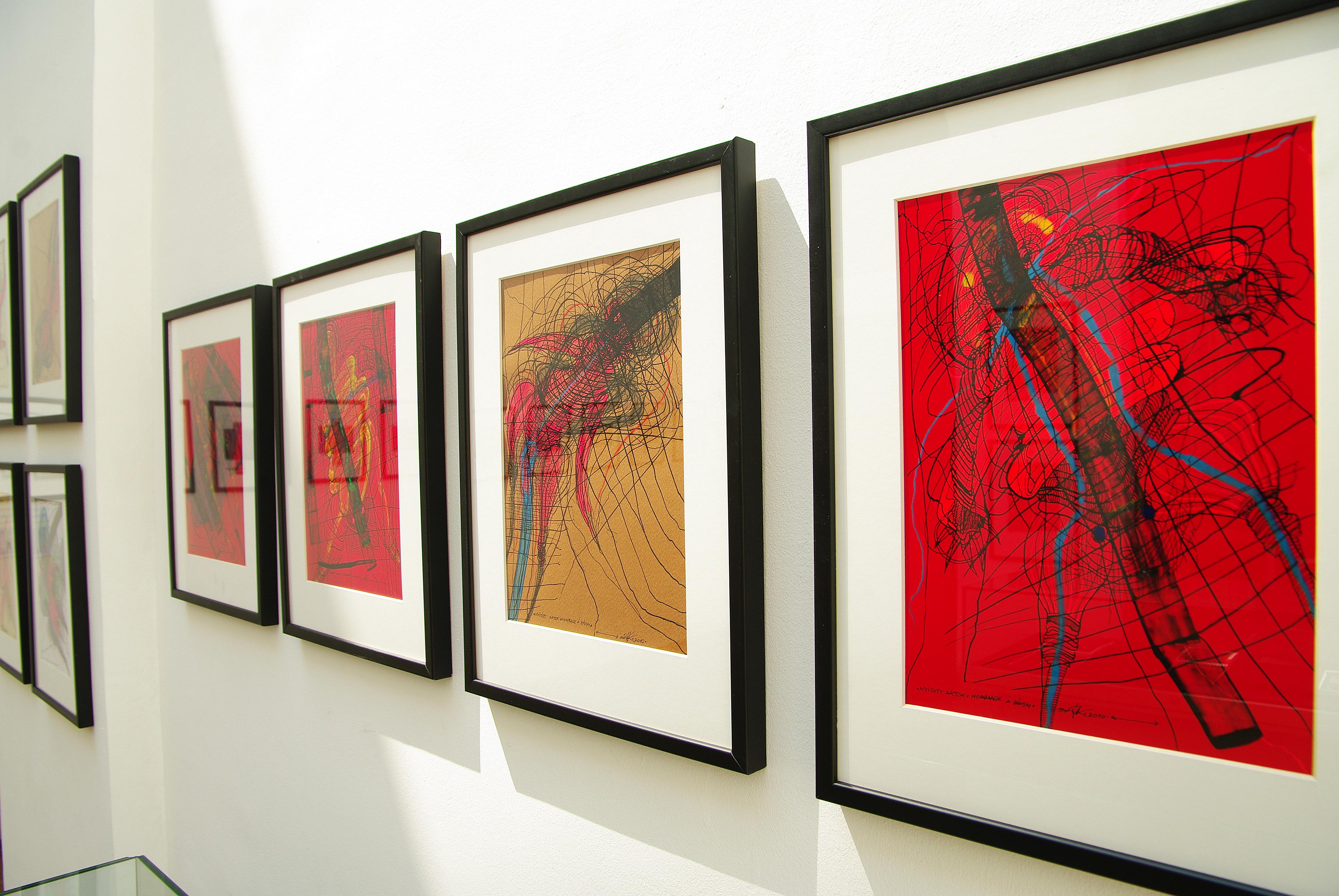Mappák kortársaimról című grafikai sorozata hommage, tisztelgés az Új Symposion első nagy írói nemzedéke, Bányai János, Bosnyák István, Brasnyó István, Domonkos István, Fehér Kálmán, Gion Nándor, Tolnai Ottó és Végel László életműve előtt.