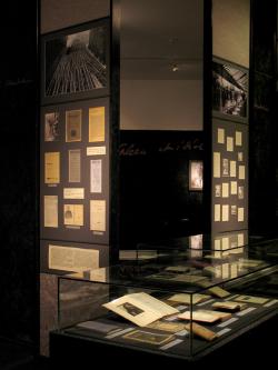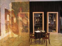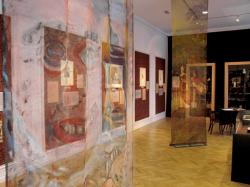 A selyemkárpittal bevont falakon, a gazdagon redőzött függönyök között elhelyezkedő képek és a mellettük olvasható, velük szoros összefüggésben lévő francia-magyar versszövegek együttese egyszerre idézik fel a költő korát, és azt a szimbolizmusra olyannyira jellemző kapcsolatgazdagságot, szinesztézián alapuló szemléletet, melynek mára klasszikussá vált megfogalmazása a Kapcsolatok (Correspondances) című költemény. A bordó és szürke selymek árnyalatainak két termen átívelő, egymással feleselő ellentéte megjeleníti ennek a kimeríthetetlen köl­tészetnek az összetettségét: a bűn és az áhítat, a Spleen és az Ideál, a mámor és a kíméletlen önelemzés, a gondolatiság és az érzékiség, az erotika és a halál élményének kettős izzását.