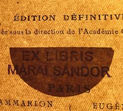 Régebben gyakran lehetett találni ép vagy leragasztott ex libriseket az antikváriumban vásárolt könyvek előlapján. De azt csak most vettem észre, hogy a két kötet címlapján lila festékes egyszerű pecséttel a korábbi tulajdonos is megörökítette a nevét; ezt azonban annak idején (vajon miért?) félbevágott fehér koronggal leragasztották. Mivel nemrég én is csináltattam ex libris pecsétet, kíváncsi lettem, ki is lehetett a korábbi tulajdonos; a nevet, lámpafény felé tartva a könyvet, nem volt nehéz kibetűzni: EX LIBRIS MÁRAI SÁNDOR. Az érzés, ami hirtelen átfutott rajtam, nem is annyira a meglepetésé volt, mint inkább a megilletődöttségé. Eszembe jutott, volt nekem már rangos írótól való könyvem. A hetvenes évek elején Szomory Dezső barna szattyánbőrbe kötött híres könyvtárának egy kósza kötete keveredett hozzám, törtem is rajta eleget a fejem, miért vásárolhatta meg, és főleg, hogy olvasta-e egyáltalán a Párizsi regény szerzője a XIX. század végének neves francia középkorkutatója, Gaston Paris 1888-ban közreadott La littérature francaise au Moyen Âge, XIe-XIVe siècle [A francia irodalom a középkorban] című könyvét...