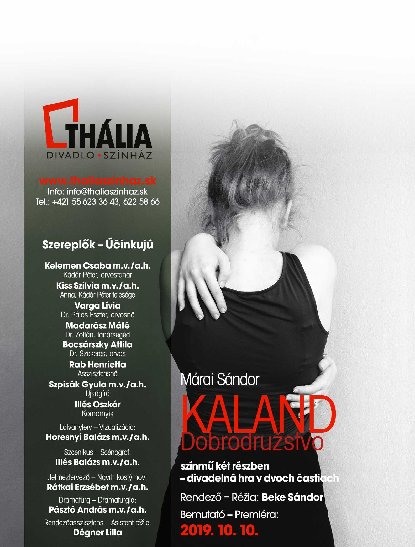 A kassai Thália Színház a 2019/20-as évadban ünnepli fennállásának 50. évfordulóját. Ebből az alkalomból az évad első bemutatója Márai Sándor: Kaland című színműve volt. Az előadást a most 80 éves Beke Sándor rendezte, aki korábban már két alkalommal állította színpadra Márai műveit (A gyertyák csonkig égnek, 2010; A kassai polgárok, 2014). "Történelmi" is e bemutató, hiszen „...ezt a darabot még soha nem játszották az író szülővárosában, holott ez volt a legsikeresebb színpadi műve” – mondta a műről Forgács Miklós, a Thália Színház dramaturgja.