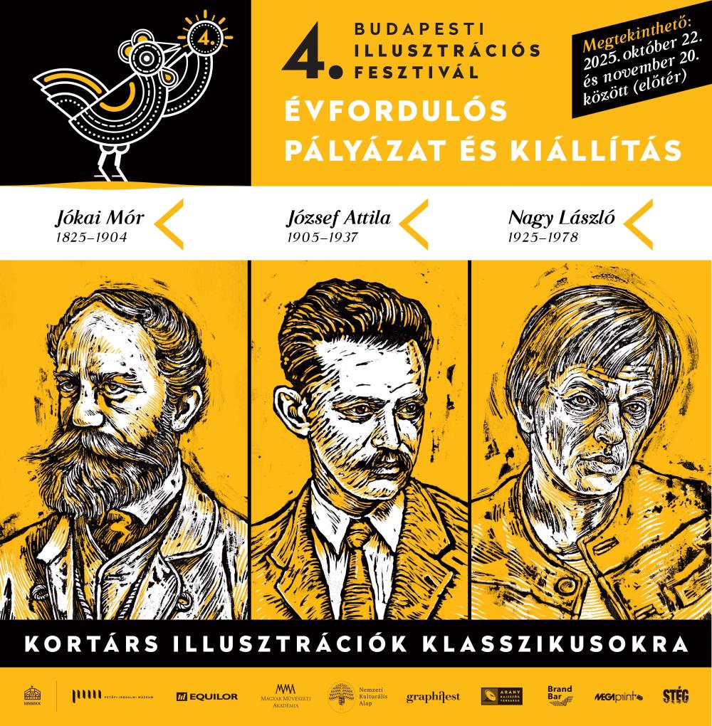 A Budapesti Illusztrációs Fesztivállal együttműködésben ezúttal arra kértük az illusztrátorokat, hogy három klasszikus szerző alkotásaira készítsenek műveket. Idén ünnepeljük Jókai Mór születésének 200. évfordulóját, József Attila születésének 120. jubileumát és Nagy László születésének centenáriumát. Jókai a 19. század embere, József Attila és Nagy László tapasztalatai és traumái azonban a 20. század viharos történelmi érájából fakadnak. Ők hárman eltérő irodalmi műnemben alkottak maradandót, Jókait regényíróként, József Attilát és Nagy Lászlót elsősorban költőként ismerjük. Mindhárom író szövegei ma is részei a művelt olvasó könyvtárának. A kortárs illusztrátorok nem csak a vizualitás eszköztárára fordítják le a műveket, hanem a képek kifejezőereje révén az ezredforduló látásmódjához is közelítik a klasszikusokat. Az illusztrációk azt bizonyítják, hogy Jókai regényeire, József Attila és Nagy László verseire korunk olvasói is érzékenyen rezonálnak.