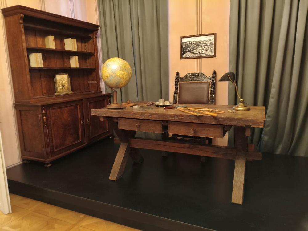 Március 27-től lesz látogatható az állandó Márai Sándor kiállítás Budán a Virág Benedek Házban. Kevéssel a megnyitó előtt rövid bepillantást nyújtunk a kiállításba. A képen az író egykori, Mikó utcai asztala és az egykor a család tulajdonában lévő szék és könyvespolc látható. A kiállítás a kezdeti időszakban szerdától vasárnapig 10-től 18 óráig lesz látogatható.